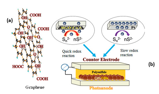 - Radich, J.G.; Dwyer, R.; Kamat, P.V. Cu2S reduced graphene oxide composite for high-efficiency quantum dot solar cells. Overcoming the redox limitations of S2–/Sn2–at the counter electrode. J. Phys. Chem. Lett. 2011, 2, 2453–2460. [Google Scholar] [CrossRef]