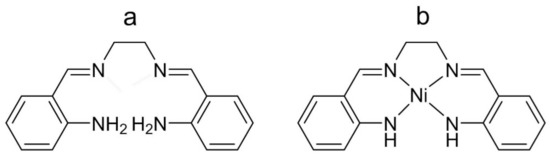 - Green, M.; Tasker, P.A. NN′-ethylenebis-(o-aminobenzylideneiminato)nickel(II) and its derivatives. J. Chem. Soc. A 1970, 2531–2539. [Google Scholar] [CrossRef]