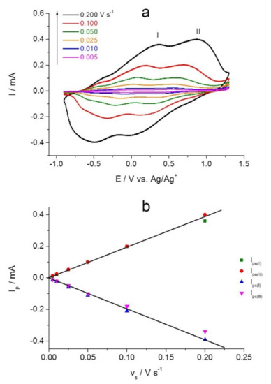 | Scan Rate, vs (V s−1) | Electrons Exchanged Per Repeat Unit (Oxidation), nox | Electrons Exchanged Per Repeat Unit (Reduction), nred |