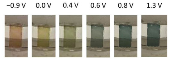 - Mortimer, R.J. Electrochromic Materials. Annu. Rev. Mater. Res. 2011, 41, 241–268. [Google Scholar] [CrossRef]
