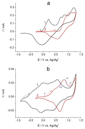- Horwitz, C.P.; Zuo, Q. Oxidative electropolymerization of iron and ruthenium complexes containing aniline-substituted 2,2′-bipyridine ligands. Inorg. Chem. 1992, 31, 1607–1613. [Google Scholar] [CrossRef]