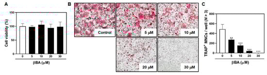 2.1. βBA Suppresses RANKL-Induced Osteoclastogenesis without Cytotoxicity