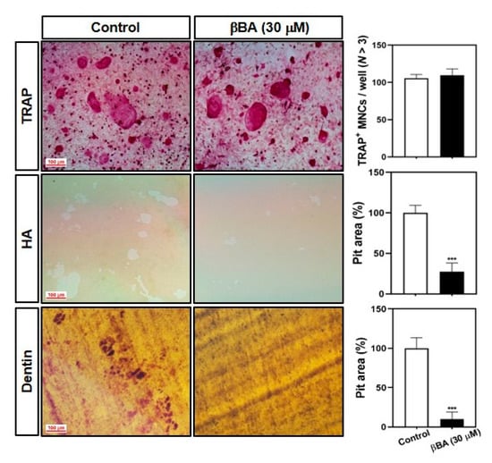 2.5. βBA Suppresses the mRNA Expression of Osteoclast Specific Marker Genes