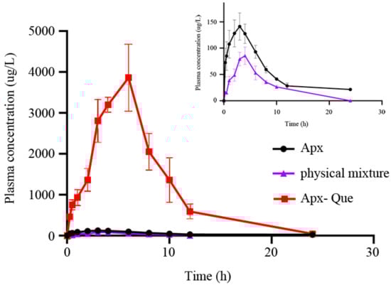 | Parameter | Apx | Physical Mixture | Apx–Que |