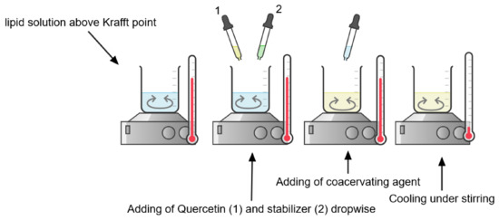 Steps of coacervation process for QuercSLN (Created with Chemix).