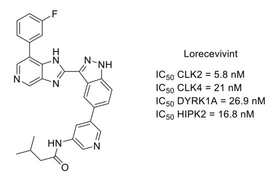 3.6. CDC-Like Kinase 2 (CLK2)/Dual-Specificity Tyrosine Phosphorylation-Regulated Kinase 1A (DYRK1A)