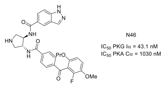 - Qin, L.; Sankaran, B.; Aminzai, S.; Casteel, D.E.; Kim, C. Structural basis for selective inhibition of human PKG Iα by the balanol-like compound N46. J. Biol. Chem. 2018, 293, 10985–10992. [Google Scholar] [CrossRef]