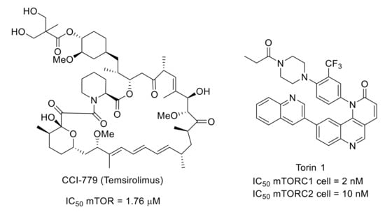 - Liu, Q.; Chang, J.W.; Wang, J.; Kang, S.A.; Thoreen, C.C.; Markhard, A.; Hur, W.; Zhang, J.; Sim, T.; Sabatini, D.M.; et al. Discovery of 1-(4-(4-propionylpiperazin-1-yl)-3-(trifluoromethyl)phenyl)-9-(quinolin-3-yl)benzo[h][1,6]naphthyridin-2(1H)-one as a highly potent, selective mammalian target of rapamycin (mTOR) inhibitor for the treatment of cancer. J. Med. Chem. 2010, 53, 7146–7155. [Google Scholar] [CrossRef]
