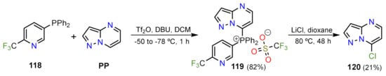 - Levy, J.N.; Alegre-Requena, J.V.; Liu, R.; Paton, R.S.; McNally, A. Selective Halogenation of Pyridines Using Designed Phosphine Reagents. J. Am. Chem. Soc. 2020, 142, 11295–11305. [Google Scholar] [CrossRef] [PubMed]