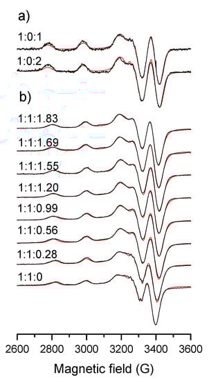 - Rockenbauer, A.; Korecz, L. Automatic computer simulations of ESR spectra. Appl. Magn. Reson. 1996, 10, 29–43. [Google Scholar] [CrossRef]