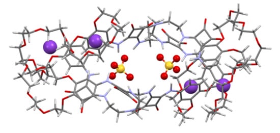 - Jagleniec, D.; Dobrzycki, L.; Karbarz, M.; Romański, J. Ion-pair induced supramolecular assembly formation for selective extraction and sensing of potassium sulfate. Chem. Sci. 2019, 10, 9542–9547. [Google Scholar] [CrossRef]
