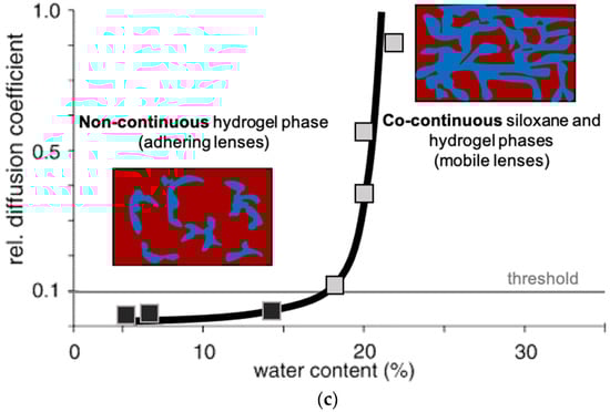 | Technology Generation | Proprietary Name | Material | Manufacturer | Launch Date | Water Content (%) | Dk | O2 Transport Enhancer | Hydrophilic Component * | Refs. |