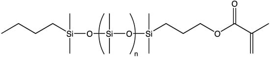 | MCR-M07 | MonoMETHACRYLOXYPROPYL TERMINATED POLYDIMETHYLSILOXANE | 600–800 | 6–9 | 0.96 | 1.416 | [60,79,92,93,94,95,96,97] |