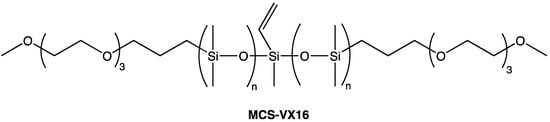| MCR-XT11 | MonoTRIETHOXYSILYLETHYL TERMINATED POLYDIMETHYLSILOXANE | 500–1000 | 16–24 | 0.97 | 1.412 | [79] |