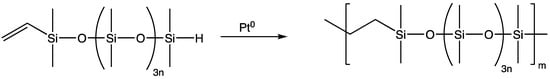 - Paulasaari, J.K.; Weber, W.P. Preparation of Highly Regular Poly(l-Hydrido-l,3,3,5,5-Pentamethyltrisiloxane) and Its Chemical Modification by Hydrosilylation. Macromolecules 1999, 32, 6574–6577. [Google Scholar] [CrossRef]