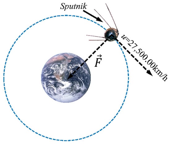An orbiting object around Earth (Sputnik), with its velocity and applied forces.