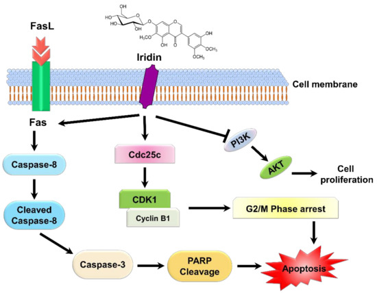 Bhosale, P.-B.; Vetrivel, P.; Ha, S.-E.; Kim, H.-H.; Heo, J.-D.; Won, C.-K.; Kim, S.-M.; Kim, G.-S. Iridin Induces G2/M Phase Cell Cycle Arrest and Extrinsic Apoptotic Cell Death through PI3K/AKT Signaling Pathway in AGS Gastric Cancer Cells. Molecules 2021, 26, 2802. https://doi.org/10.3390/molecules26092802