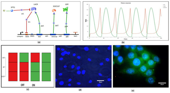 - Elowitz, M.B.; Leibier, S. A synthetic oscillatory network of transcriptional regulators. Nature 2000, 403, 339–342. [Google Scholar] [CrossRef] [PubMed]