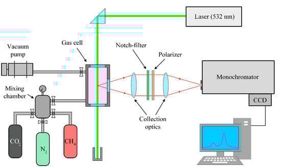 30. Petrov, D.V. Raman spectrum of methane in nitrogen, carbon dioxide, hydrogen, ethane, and propane environments. Spectrochim. Acta—Part A Mol. Biomol. Spectrosc. 2018, 191, 573–578. [Google Scholar] [CrossRef]