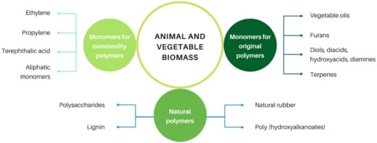 Herein, we aimed to tackle the promising research initiatives related to ongoing investigations and potential applications dedicated to the production of original materials from animal- and plant-based resources. We briefly presented the most recent and promising contributions, supported by a notable number of review articles recently published. A careful reading of the text suggests that viable large-scale production of polymers from renewable resources is still limited by the cheap well-consolidated fossil-based analogous processes, but the scenario is expected to change in the near future, following the fluctuating tendencies in petroleum prices, as well as the mandatory actions imposed to mitigate the climate change.