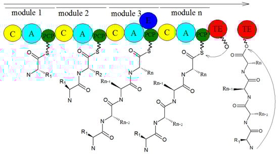 - Strieker, M.; Tanovic, A.; Marahiel, M.A. Nonribosomal peptide synthetases: Structures and dynamics. Curr. Opin. Struct. Biol. 2010, 20, 234–240. [Google Scholar] [CrossRef] [PubMed]