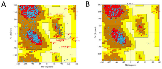 - Laskowski, R.A.; MacArthur, M.W.; Moss, D.S.; Thornton, J.M. PROCHECK: A program to check the stereochemical quality of protein structures. J. Appl. Crystallogr. 1993, 26, 283–291. [Google Scholar] [CrossRef]