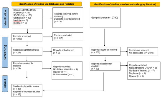 Electronic databases that were used for this review were PubMed, Scopus, Google Scholar, preprint platforms, and the Cochrane Database of Systematic Reviews. The articles were gathered from the inception of the database until August 2021. The strategies used for the electronic search are shown in Figure 5 (PRISMA Flow diagram).