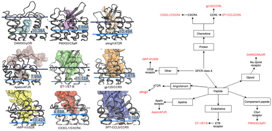 2.1. Diversity in the Binding Modes of the Peptide Ligands to Class A GPCRs