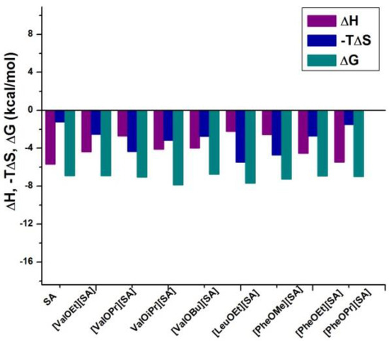 | [LeuOEt][SA] | 14.377 ± 0.014 | 8.659 ± 0.008 |
