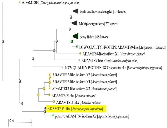 Phylogenetic tree analysis of ADAMTS13-like from A. japonicus.