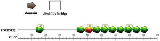 Based on a previously constructed cDNA library from sea cucumber (A. japonicus), a homologue of ADAMTS13 was found through sequence assembly. In addition, both the NCBI database (https://www.ncbi.nlm.nih.gov/, accessed on 18 February 2020) and EXPASY (https://www.expasy.org/, accessed on 18 February 2020) were used to search the ORF, phylogenetic tree and domains of ADAMTS13-like from A. japonicus, respectively. Furthermore, multiple-sequence alignment of the third TSP1 domain of ADAMTS13-like was performed using Clustal O.