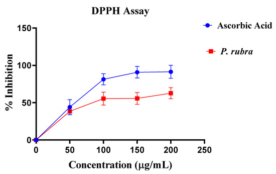 Antioxidant potential of P. rubra with respect to ascorbic acid by DPPH assay (n = 5).