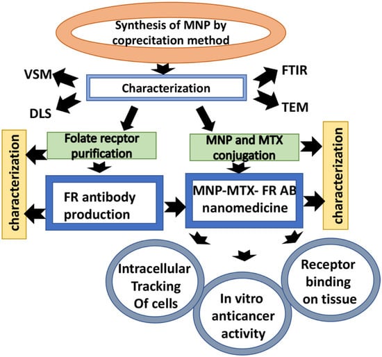 In the current research work, anti-folate receptor antibodies were used for targeting folate receptors. Antibodies were produced against purified folate receptors from cancerous cells. Folate receptors were purified using a novel technique of magnetic affinity purification and utilized for the production of antifolate receptor antibody. Folate receptor purification using nanotechnology assures the purification of intact protein in biologically active form. A novel targeting nanomedicine formulation was prepared by conjugation of MNP with MTX and anti-FR antibody for targeted drug delivery through antibody-mediated endocytosis. This novel method of targeted drug delivery through folate receptors not only delivers MTX to the cancer cells but also attracts macrophages and natural killer cells to eradicate cancer/tumor cells through opsonization. Therefore, this study may help to identify the synergistic effect of targeted drug delivery along with immunotherapy in the future.