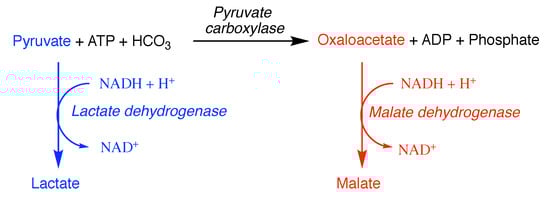 - Warren, G.B.; Tipton, K.F. Pig liver pyruvate carboxylase. The reaction pathway for the carboxylation of pyruvate. Biochem. J. 1974, 139, 311–320. [Google Scholar] [CrossRef] [PubMed]