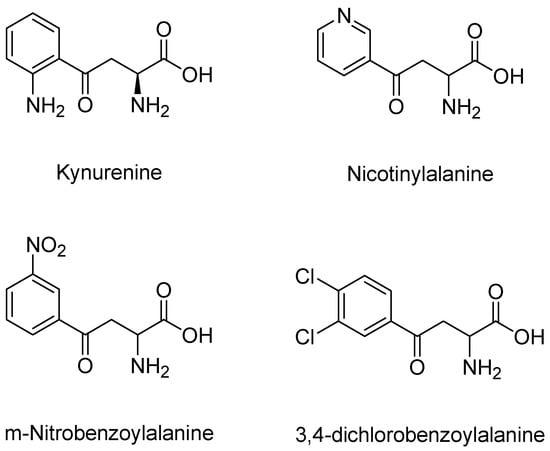 - Pellicciari, R.; Natalini, B.; Costantino, G.; Mahmoud, M.R.; Mattoli, L.; Sadeghpour, B.M.; Moroni, F.; Chiarugi, A.; Carpenedo, R. Modulation of the kynurenine pathway in search for new neuroprotective agents. Synthesis and preliminary evaluation of (m-nitrobenzoyl)alanine, a potent inhibitor of kynurenine-3-hydroxylase. J. Med. Chem. 1994, 37, 647–655. [Google Scholar] [CrossRef] [PubMed]