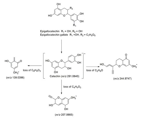 The main fragmentation pathways of the catechin derivatives.