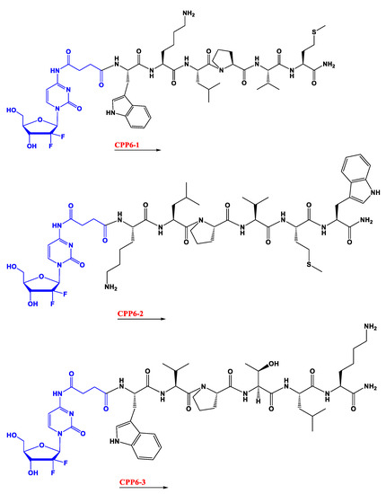 As mentioned previously, the chemical modification of gemcitabine to increase anticancer effects is growing in interest. One of the groups with most potential to be conjugated with gemcitabine is the cell-penetrating peptides (CPPs), and our group has two types of CPPs that demonstrate this potential [19,20].