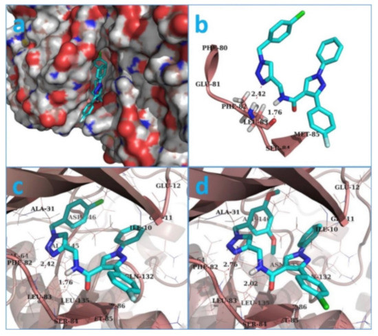 - Caballero, J.; Alzate-Morales, J.H.; Vergara-Jaque, A. Investigation of the Differences in Activity between Hydroxycycloalkyl N1 Substituted Pyrazole Derivatives as Inhibitors of B-Raf Kinase by Using Docking, Molecular Dynamics, QM/MM, and Fragment-Based De Novo Design: Study of Binding Mode of Diastereomer Compounds. J. Chem. Inf. Modeling 2011, 51, 2920–2931. [Google Scholar] [CrossRef]