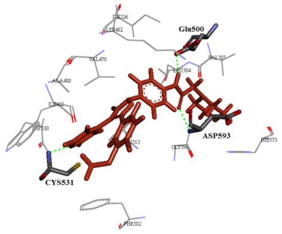 In silico binding interactions of compound 2 with Akt1 kinase crystal structure [11].