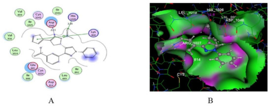 Binding interactions of compound 5 with Aurora B crystal structure [15].