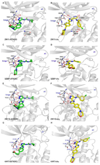 - Curtin, M.L.; Robin Heyman, H.; Frey, R.R.; Marcotte, P.A.; Glaser, K.B.; Jankowski, J.R.; Magoc, T.J.; Albert, D.H.; Olson, A.M.; Reuter, D.R.; et al. Pyrazole diaminopyrimidines as dual inhibitors of KDR and Aurora B kinases. Bioorg. Med. Chem. Lett. 2012, 22, 4750–4755. [Google Scholar] [CrossRef]