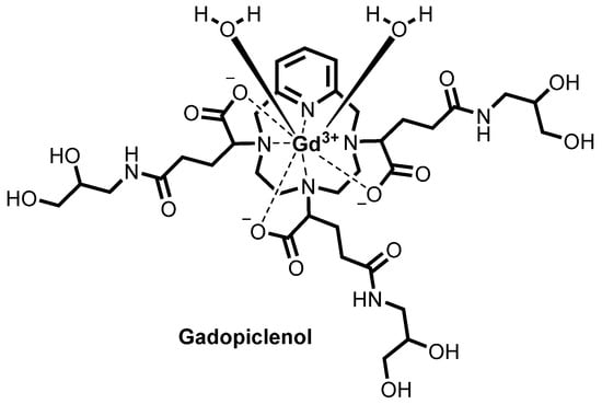 Structure of Gadopiclenol, a macrocyclic pyclen-based contrast agent.