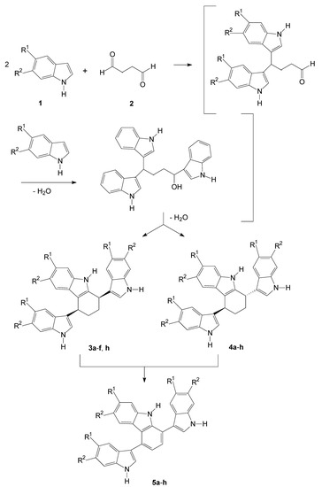 3.2. General Procedure for the Synthesis of Bisindolyl Tetrahydrocarbazoles 3 and 4