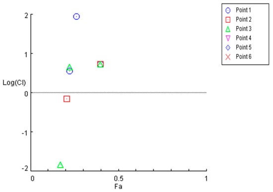 The cytotoxicity of HAA2021 in combination with different concentrations of doxorubicin was tested against MCF7/ADR cells. There were four points when the IC50 of the combination was less than the IC50 of doxorubicin or HAA2021 alone against MCF7/ADR cells. Consequently, the combination index (CI) of the respective four combinations was less than 1, showing a strong synergistic relationship between the two compounds (according to CompuSyn software version 1.0, CI = 0.8–0.9: Slight synergism; CI = 0.6–0.8: Moderate synergism; CI = 0.4–0.6: Synergism; CI = 0.2–0.4: Strong synergism). The least concentration showing synergism was doxorubicin (1.00 µM) and HAA2021 (0.25 µM) (Table 2, Figure 2). Therefore, HAA2021, at a non-toxic dose, increased the chemosensitivity of MCF7/ADR cells to doxorubicin.