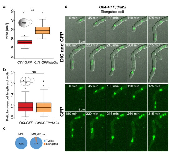 2.4. Lack of Dia2 Leads to Abnormal Cell Size