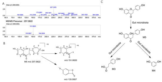 | M5 | 257.0822 | 258.0892 | C15H14O4 | [M-H]- | 1.03 |