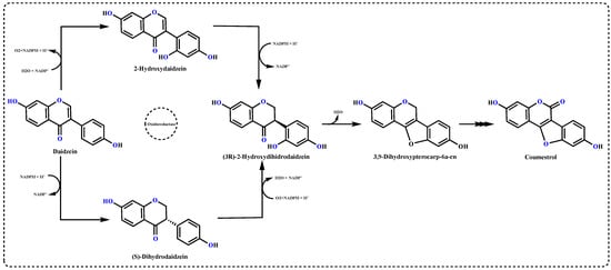 Biosynthesis pathway of Coumestrol from daidzein.