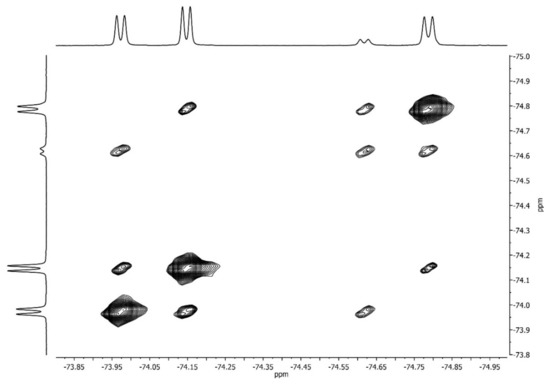 Figure 2b. Two singlets of equal intensity at –73.75 ppm and –74.81 ppm are related to rotamer