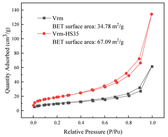 N2 adsorption/desorption isotherms of Vrm and Vrm-HS35.