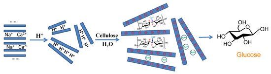 Mechanism of cellulose hydrolysis on acid-activated vermiculite.